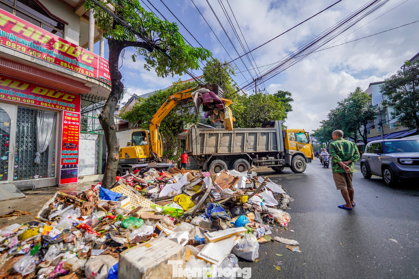 Một số tuyến đường khác vẫn đang chờ dọn rác.