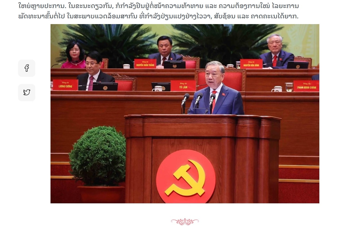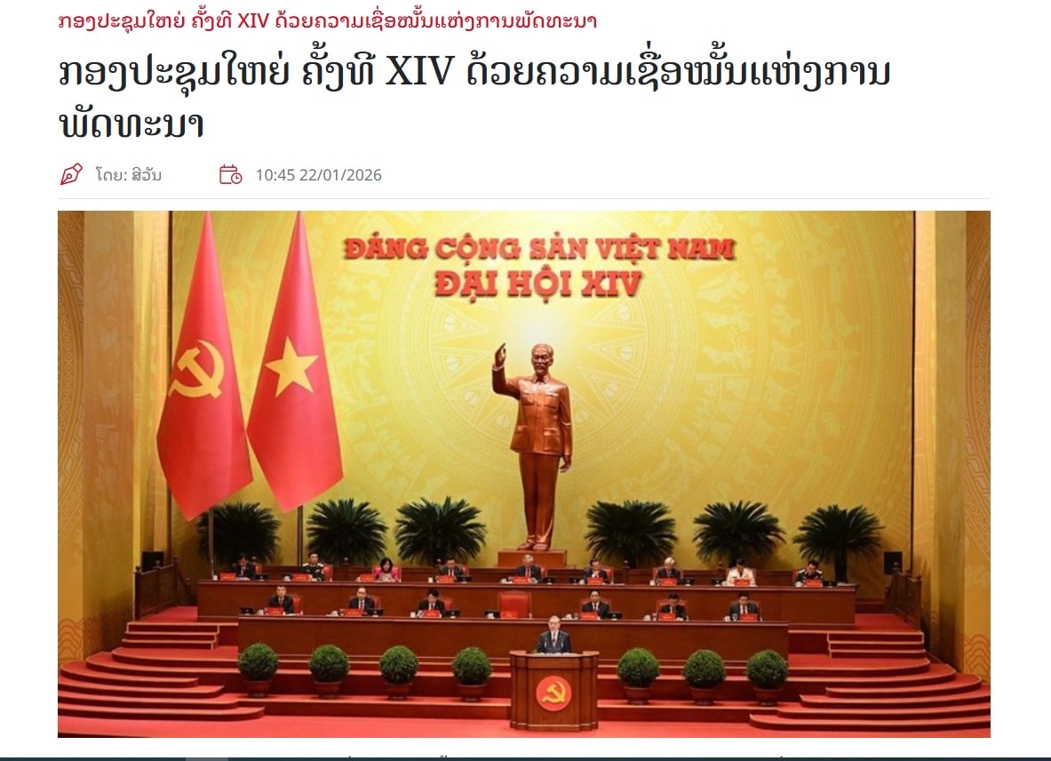 Đó là mở đầu bài viết “Đại hội XIV: Niềm tin về con đường phát triển” trên tờ Pasaxon, cơ quan ngôn luận của Trung ương Đảng Nhân dân cách mạng Lào.