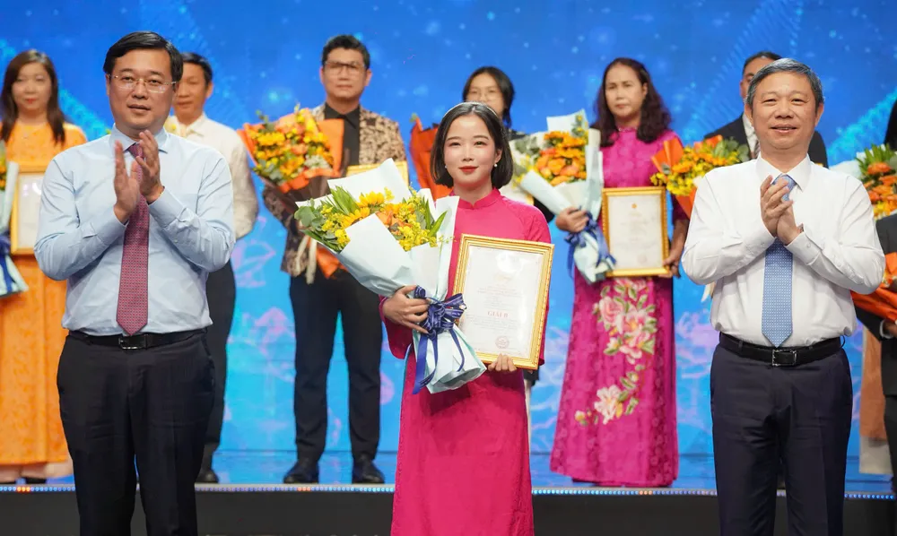 Phó Chủ tịch UBND TP.HCM Trần Thị Diệu Thúy trao giải A, B, C khối sáng tác. Ảnh: THUẬN VĂN