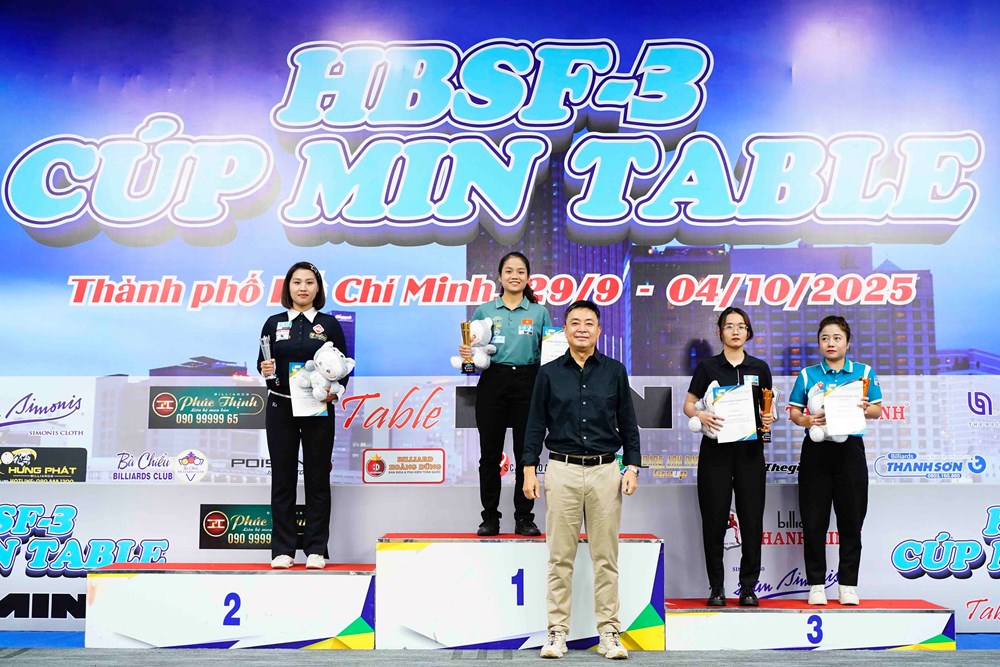 Chức vô địch carom 3 băng nữ thuộc về Nguyễn Đức Yến Sinh với chiến thắng 30-12 sau 24 lượt cơ trước Lương Thị Thơm. Trong khi đó, Bùi Xuân Vàng thắng áp đảo 7-3 trước Lê Hồng Nhung để vô địch pool 9 bi nữ.