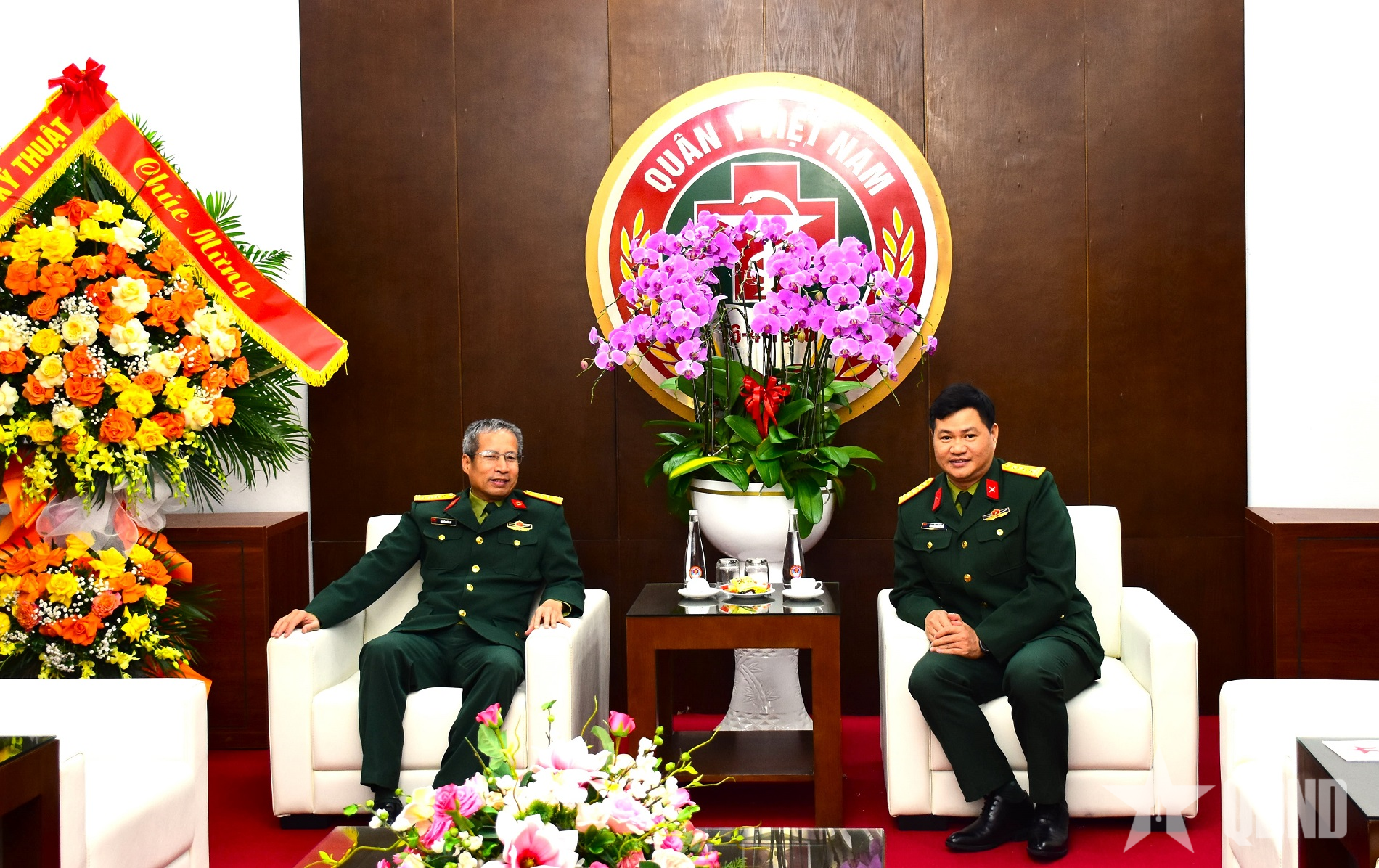 Đại tá Nguyễn Hồng Hải cùng đoàn công tác của Báo Quân đội nhân dân chúc mừng Cục Quân y (Tổng cục Hậu cần-Kỹ thuật).