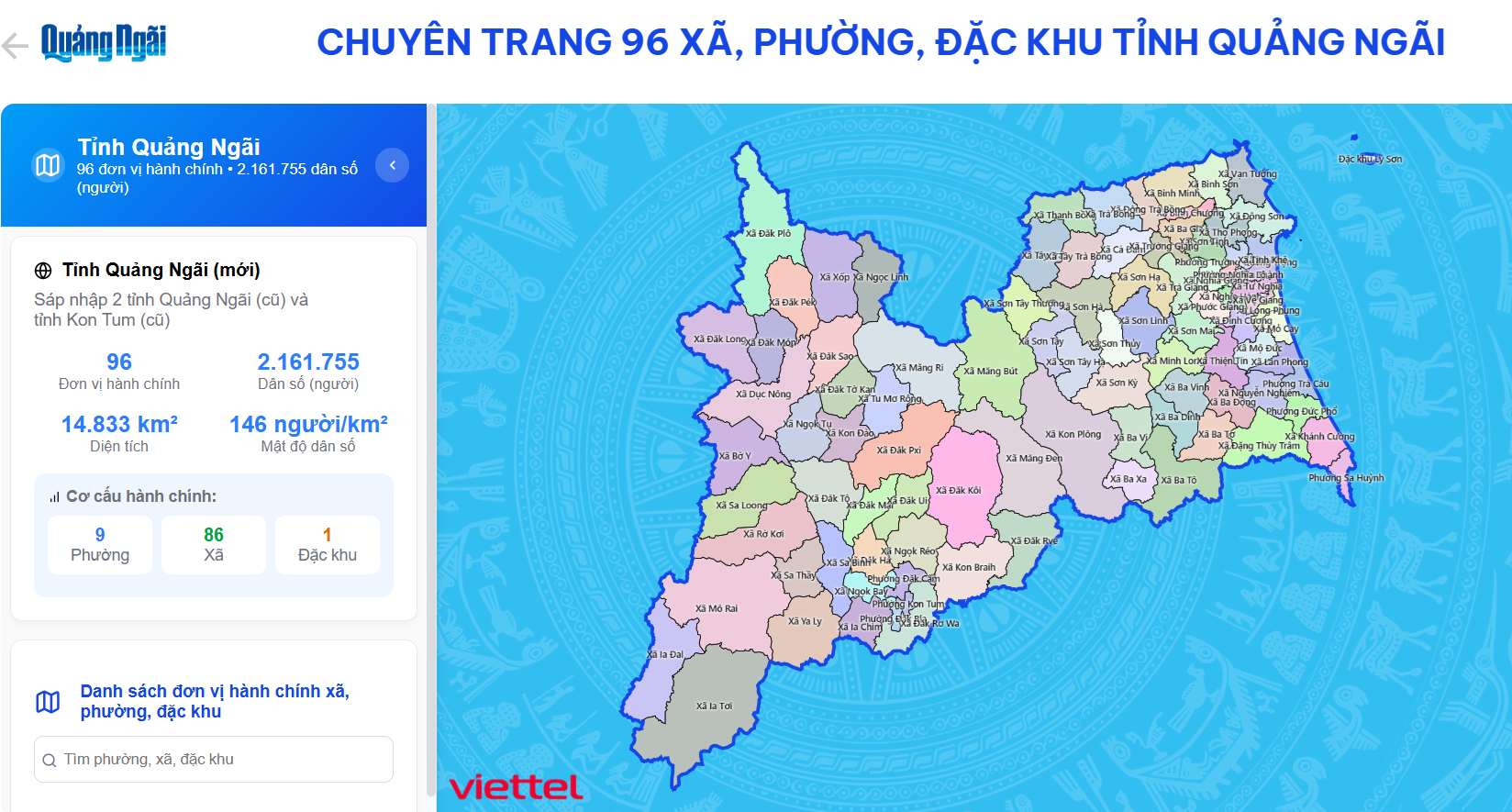 Bạn đọc có thể xem Chuyêntrang 96 xã, phường, đặc khu tỉnh Quảng Ngãi tại đây: