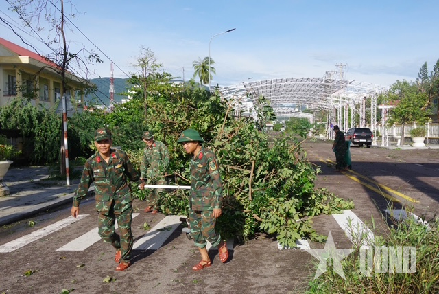 Nhanh chóng dọn dẹp cây cối, trụ điện gãy đổ, giải tỏa các tuyến đường bị ách tắc, khơi thông dòng chảy, bảo đảm giao thông thông suốt. Phối hợp với các lực lượng hỗ trợ hơn 20 hộ dân bị sập, tốc mái nhà, giúp lợp lại mái tôn, dựng lại tường rào, di chuyển đồ đạc đến nơi khô ráo.