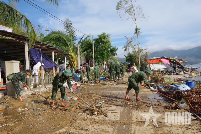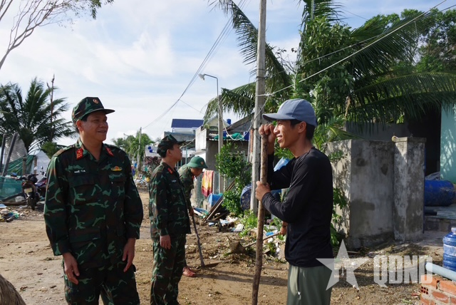 Tại Tổ dân phố Phú Mỹ, phường Sông Cầu, nơi thiệt hại nặng do bão, những hình ảnh Bộ đội Cụ Hồ dầm nước, bắc thang lên mái nhà, thu dọn từng tấm tôn, từng khúc gỗ, cào bùn đất tại các gia đình... đã để lại trong lòng người dân niềm xúc động sâu sắc. Không chỉ khắc phục hậu quả, Bộ CHQS tỉnh Đắk Lắk còn phối hợp với cấp ủy, chính quyền và các đoàn thể tổ chức thăm hỏi, động viên, hỗ trợ những hộ dân bị ảnh hưởng nặng.