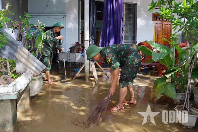 Chiến sĩ Nguyễn Hữu Nhật Trường (Trung đoàn bộ binh 888) chia sẻ: “Chúng tôi làm việc liên tục suốt đêm ngày để dọn dẹp, cứu hộ, khi nào bà con an toàn mới yên tâm. Ngay từ khi được chỉ huy đơn vị quán triệt, giao nhiệm vụ, xác định đây là nhiệm vụ, là mệnh lệnh từ trái tim của người lính, nên chúng tôi luôn hăng hái giúp đỡ nhân dân với tinh thần trách nhiệm cao nhất”.