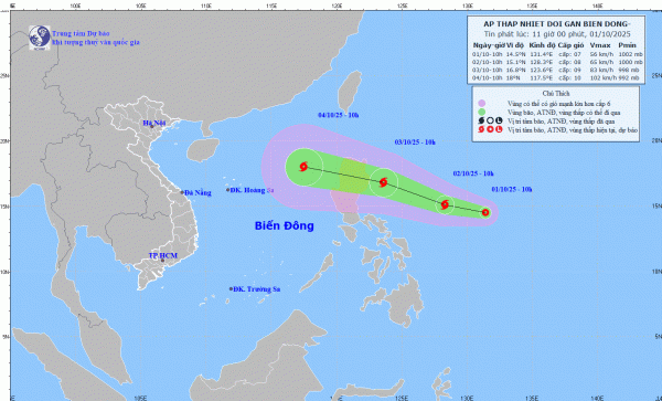 Sáng nay (1/10), một vùng áp thấp ở phía đông Philippines đã mạnh lên thành áp thấp nhiệt đới. Theo Cơ quan khí tượng Nhật Bản (JMA), dự báo vào ngày mai 2/10, áp thấp nhiệt đới này sẽ mạnh lên thành bão với cường độ mạnh cấp 8 - 9, tương đương sức gió từ 62 - 74 km/h; dự báo sẽ vào Biển Đông thành bão số 11 trong một vài ngày tới.