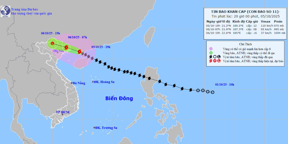 Hướng di chuyển của bão số 11 (Ảnh: NCHMF)