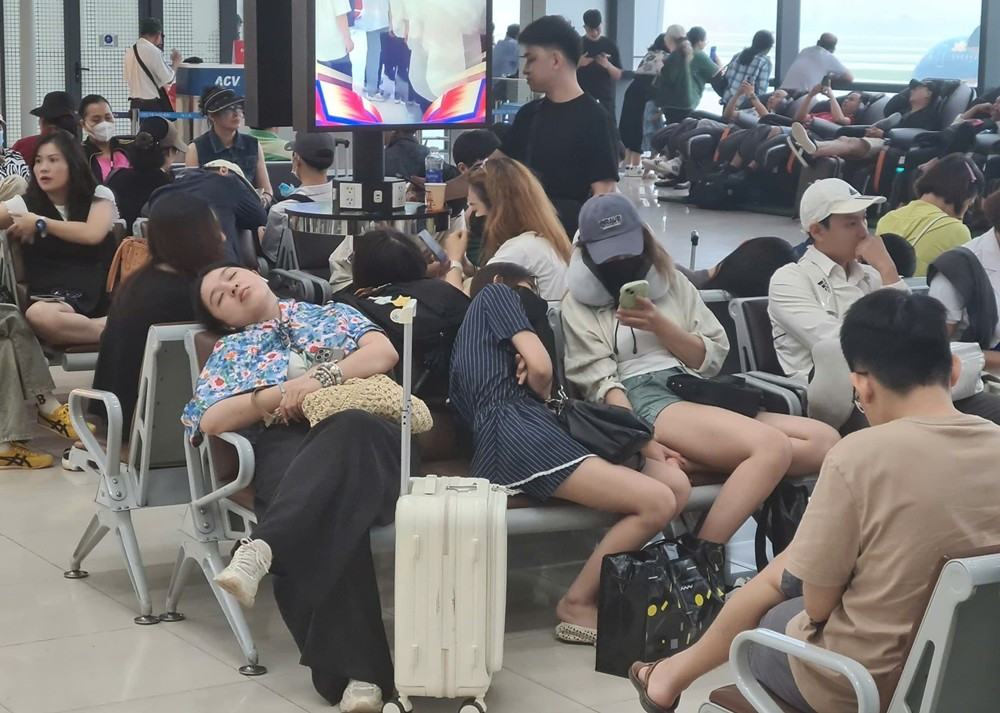 Hành khách sốt ruột vì chưa biết đến lúc nào chuyến bay của mình cất cánh.