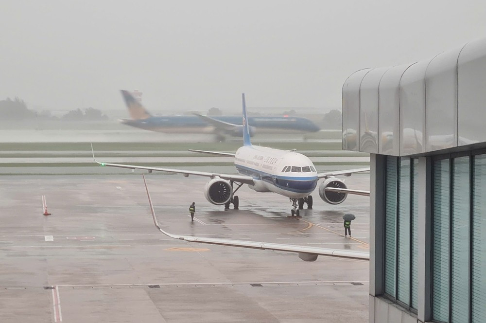 Do ảnh hưởng của cơn bão số 11 (bão Matmo), tại sân bay Nội Bài (Hà Nội) mưa lớn.