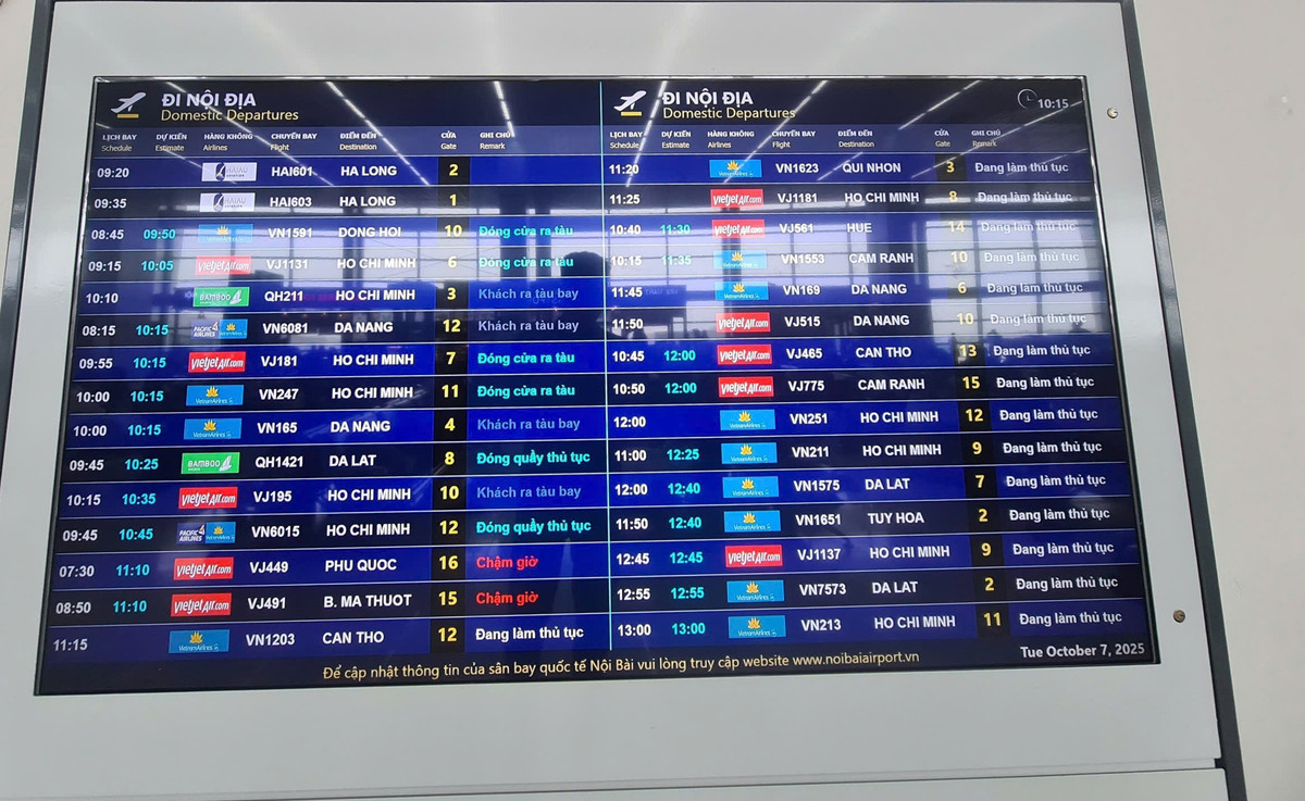Thông tin thời gian bay của một số chuyến bay tại sân bay Nội Bài ngày 7/10.
