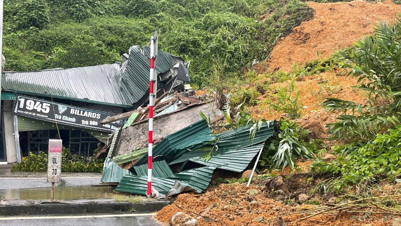 Quốc lộ 70 sạt lở đất tại Km189 với khối lượng khoảng 15.000m3.