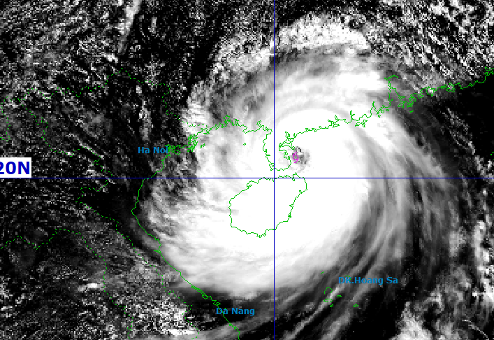 Lúc 12h trưa nay, tâm bão áp sát bán đảo Lôi Châu của Trung Quốc, cách Móng Cái (Quảng Ninh) khoảng 310km về phía đông đông nam với cường độ cấp 12-13, giật cấp 16.