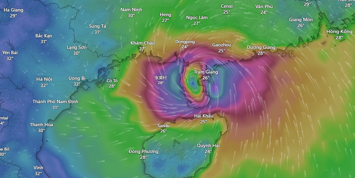 Diễn biến cơn bão số 11 vào lúc 16h50 ngày 5/10 trên ứng dụng Windy