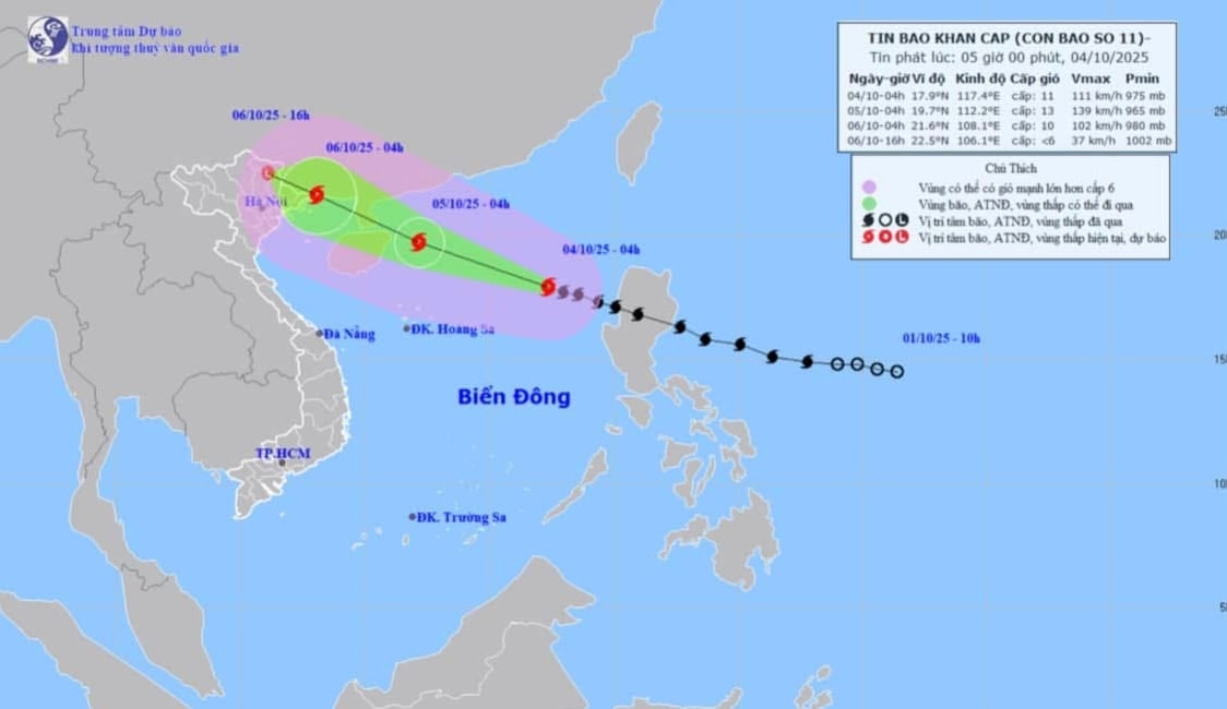 Bản đồ quỹ đạo và cường độ bão số 11 phát lúc 5h00 ngày 4/10