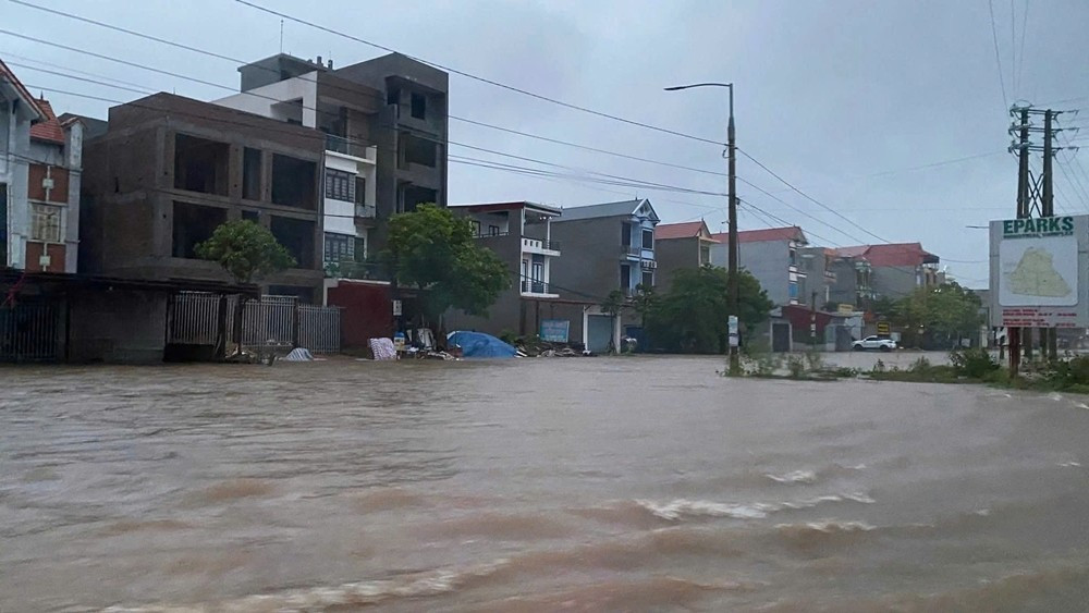 Nước ngập sâu tại khu vực liên cơ quan gần Quảng trường 3/2, phường Bắc Giang (tỉnh Bắc Ninh).