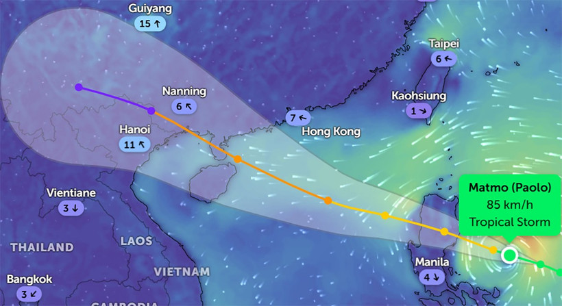 Vị trí bão Matmo lúc 20 giờ 30 phút. (Ảnh: Zoom Earth).