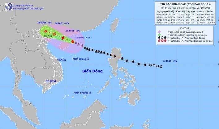 Bản đồ dự báo quỹ đạo và cường độ bão số 11 phát lúc 8h00 ngày 5/10