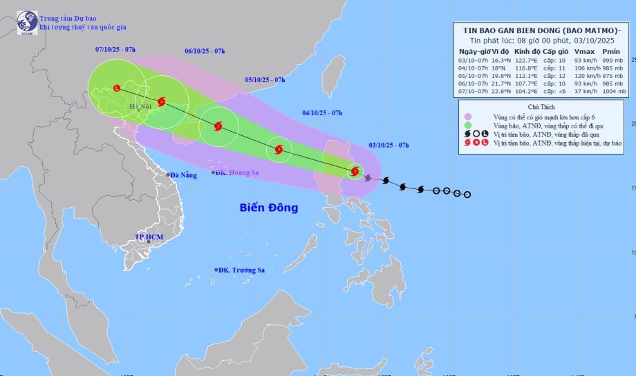 Bản đồ dự báo quỹ đạo và cường độ bão phát lúc 8h00 ngày 03/10