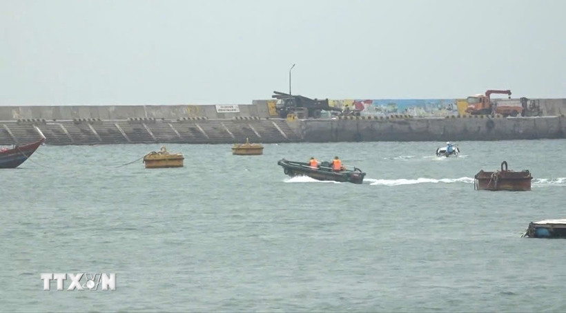 Lực lượng chức năng kiểm tra các phương tiện trong âu cảng Bạch Long Vỹ. (Ảnh: TTXVN phát)
