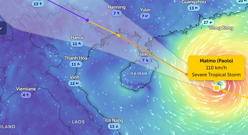 Vị trí bão số 11 lúc 15 giờ ngày 4/10. (Ảnh: Zoom Earth)