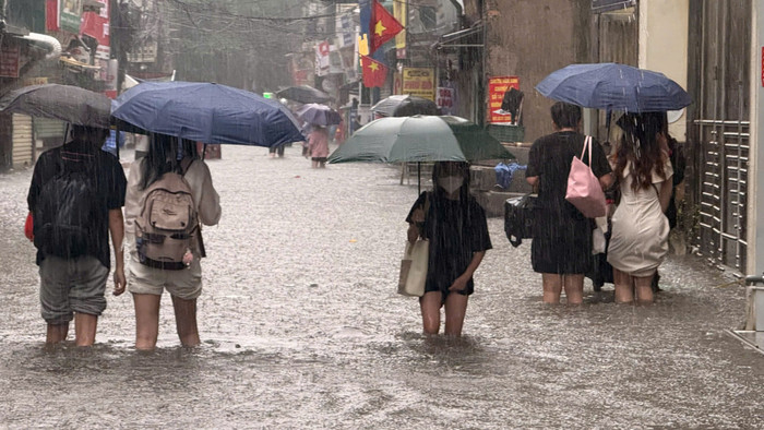 Mưa lớn gây ảnh hưởng nghiêm trọng đến đường phố Hà Nội. (Nguồn: Báo Xây dựng)