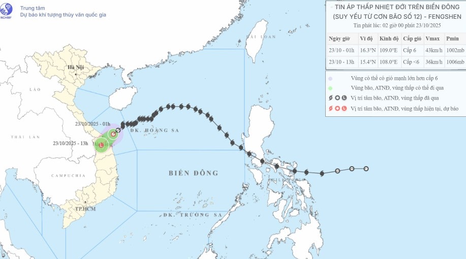 Trung tâm Dự báo khí tượng thủy văn Quốc gia cảnh báo, trên vùng biển do ảnh hưởng kết hợp với không khí lạnh nên vùng biển từ Quảng Trị đến Quảng Ngãi (bao gồm đặc khu Cồn Cỏ, đảo Cù Lao Chàm và đặc khu Lý Sơn) có gió mạnh cấp 6, giật cấp 8; sóng biển cao 2,0-4,0m, biển động.