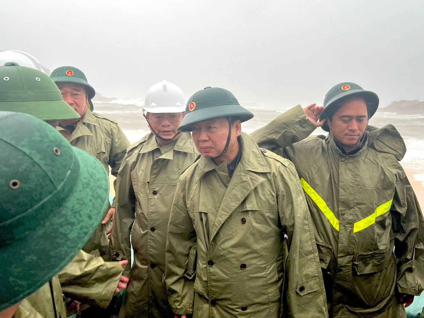 Phó Thủ tướng Trần Hồng Hà tới khu vực biển động mạnh kèm mưa lớn ở phường Quy Nhơn Bắc để nắm tình hình.