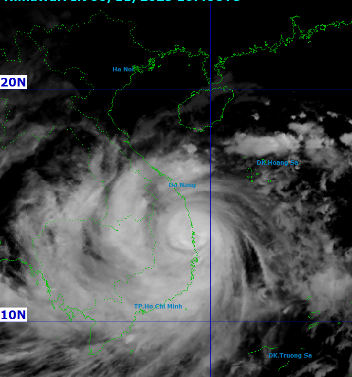 Vào lúc 18 giờ, vị trí tâm bão ở vào khoảng 13,7 độ Vĩ Bắc; 109,5 độ Kinh Đông, trên vùng ven bờ biển Đắk Lắk - Gia Lai. Sức gió mạnh nhất cấp 13 (134-149km/h), giật cấp 16. Dự báo trong 3 giờ tới, bão di chuyển chủ yếu theo hướng Tây Tây Bắc với tốc độ khoảng 30km/h.