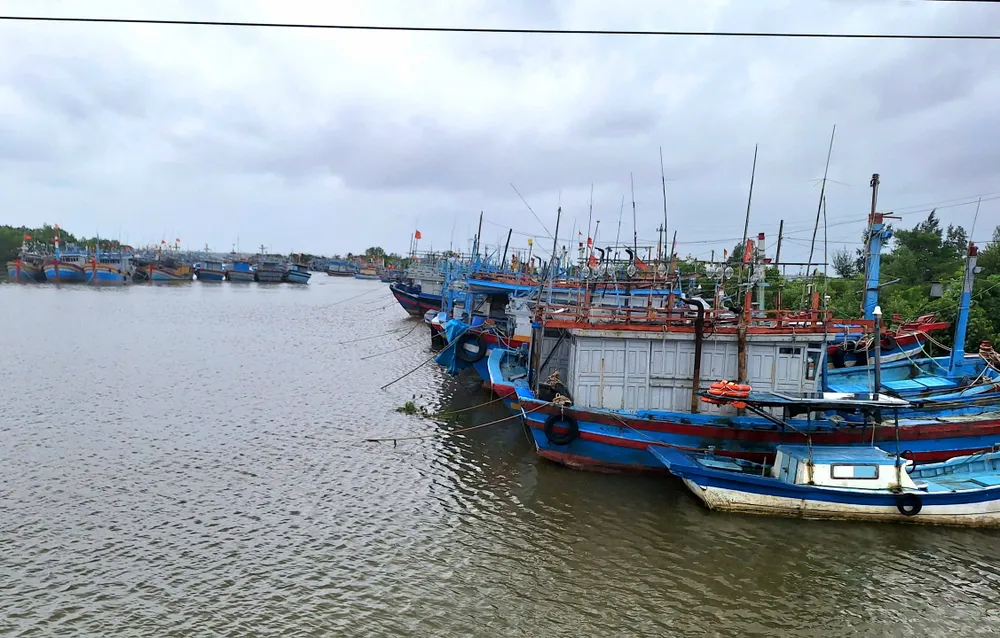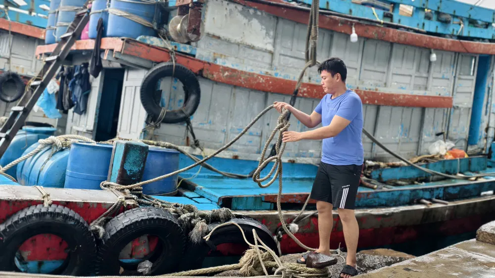 Tại xưởng sửa chữa tàu Trường Đà cuối hạ lưu sông Thu Bồn, giáp với biển, gần 100 cán bộ, chiến sĩ khẩn trương gia cố, bảo vệ hàng chục tàu cá của ngư dân đang trong thời gian bảo dưỡng.