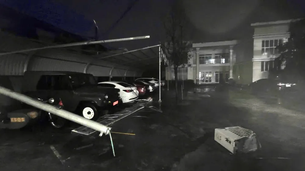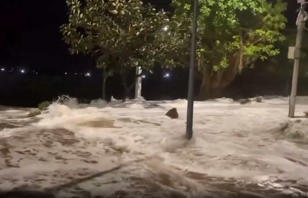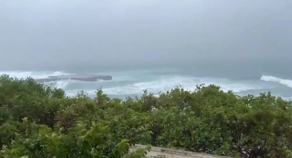 Nước biển ùa vào khu dân cư, nhà sập, nhiều cây xanh, trụ đèn ngã đổ