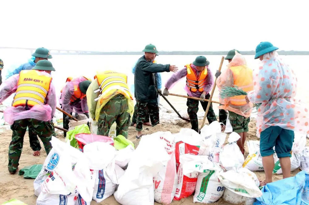 Hàng nghìn bao cát, thùng nước cùng hàng trăm cọc gỗ, dây thừng đã được huy động đến các điểm bờ sông bị sạt lở, trường học, trụ sở chính quyền, công trình công cộng và nhà dân để gia cố, chằng chống.