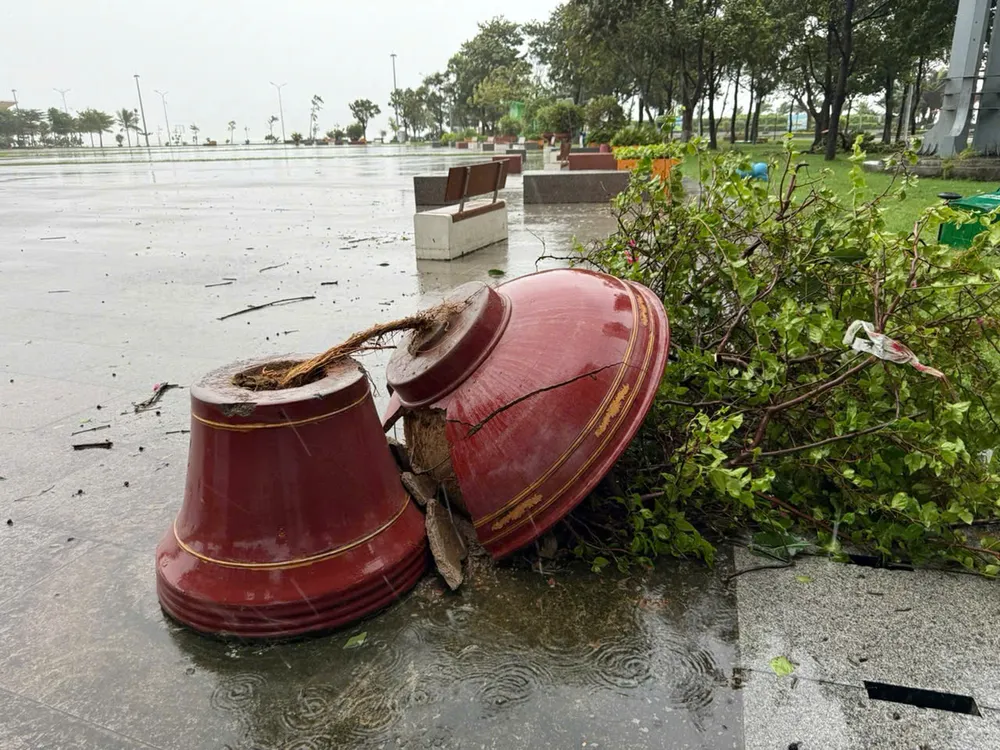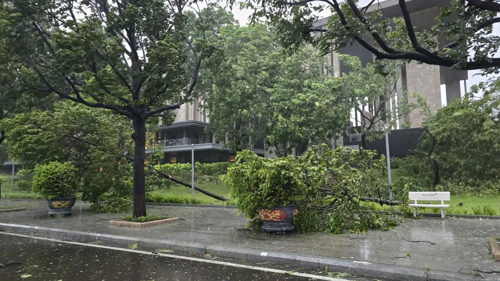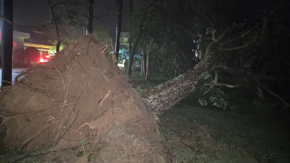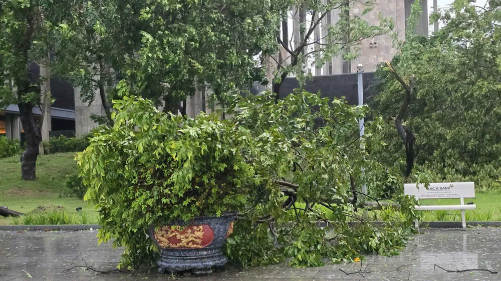 Tại khu vực Sở Chỉ huy tiền phương của Ban Chỉ đạo Phòng thủ dân sự quốc gia (phường Quy Nhơn Nam), nhiều cây xanh trong khuôn viên cũng bị gió làm cho bật gốc, gãy cành.