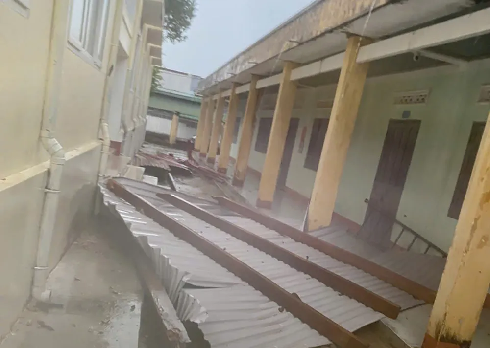 Khu vực phường Sông Cầu gió rất lớn, một nhà an toàn ở Tổ dân phố Phước Lý bị gió giật tung la phông.