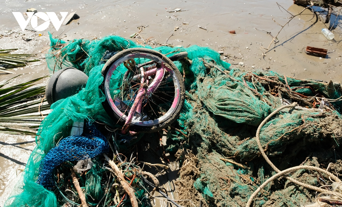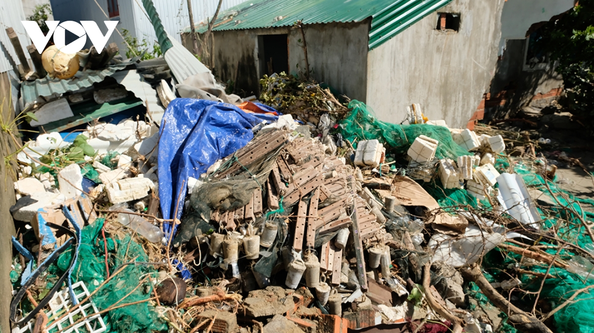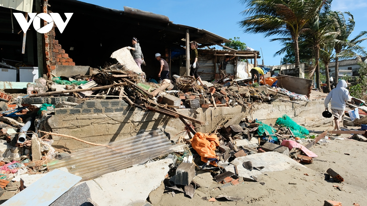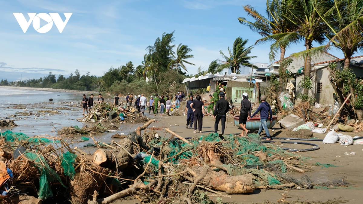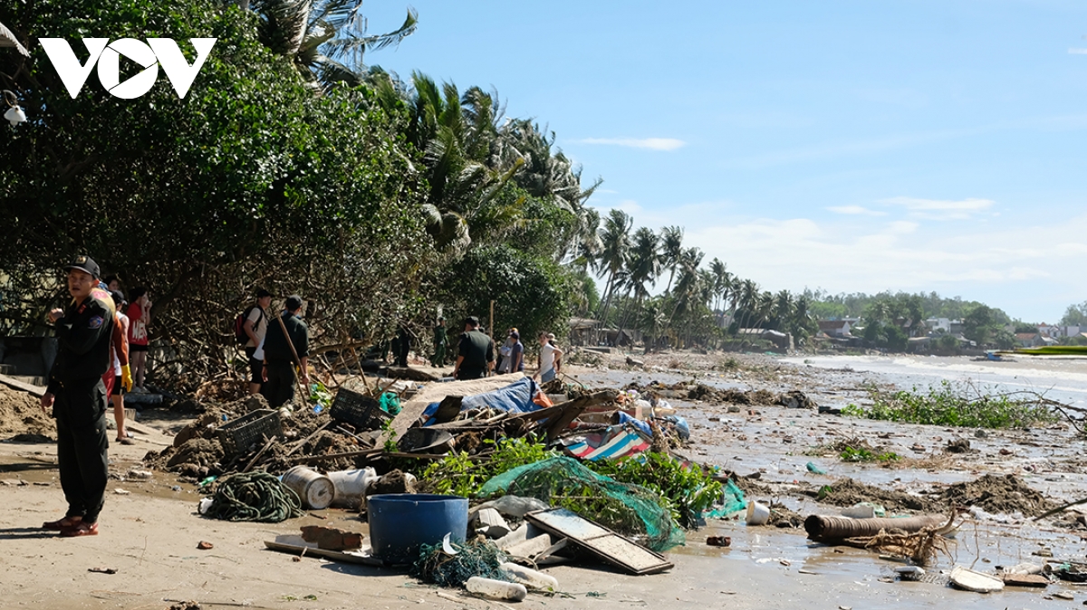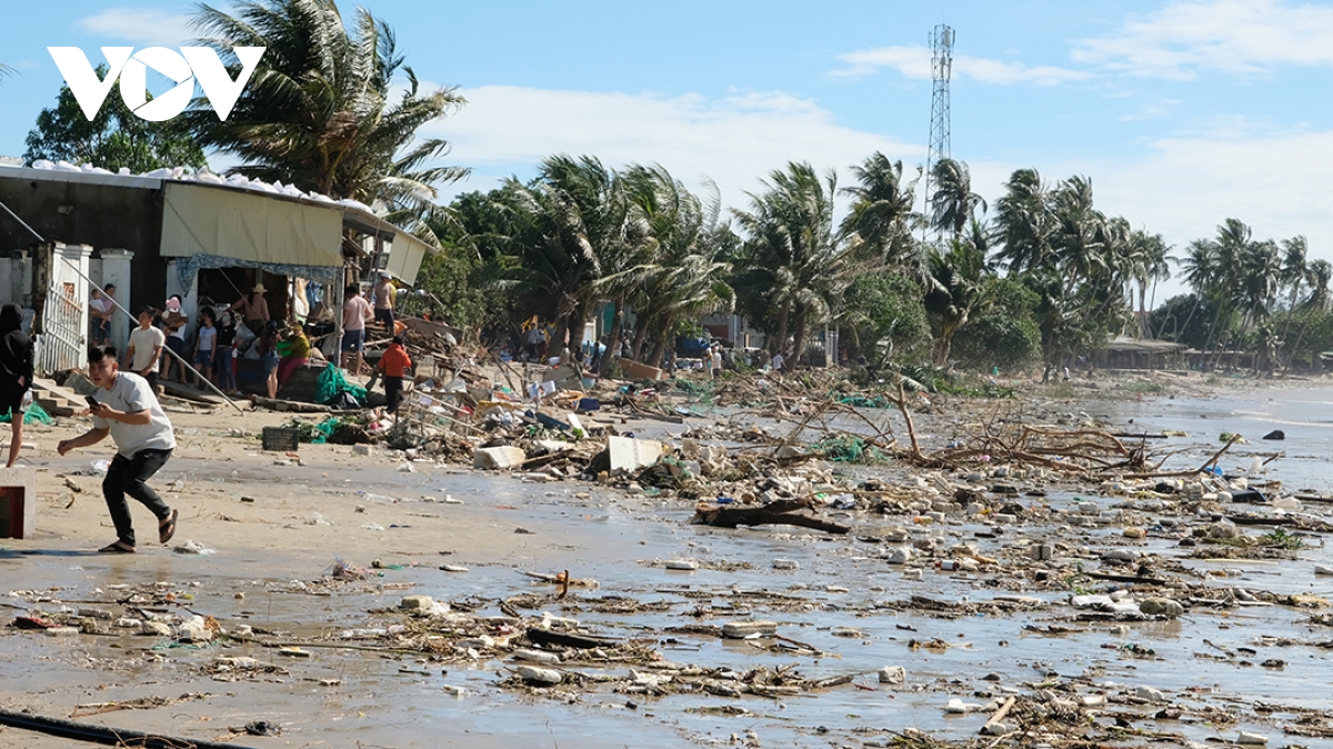 Bờ biển Tịnh Khê ngổn ngang sau bão số 13.