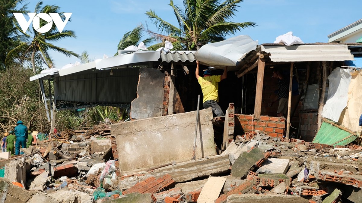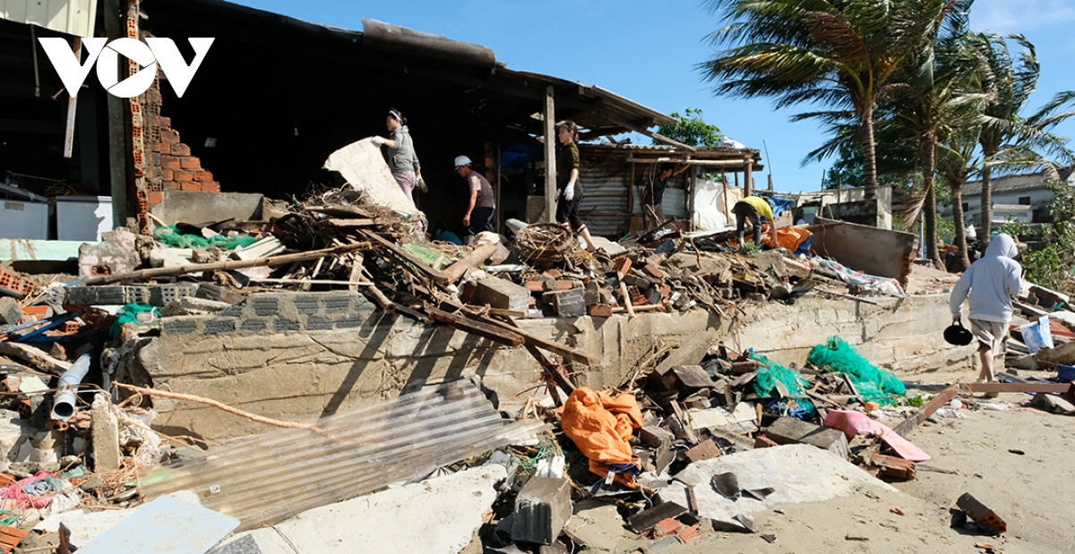 Những căn nhà ven biển tỉnh Quảng Ngãi bị sóng đánh sập.