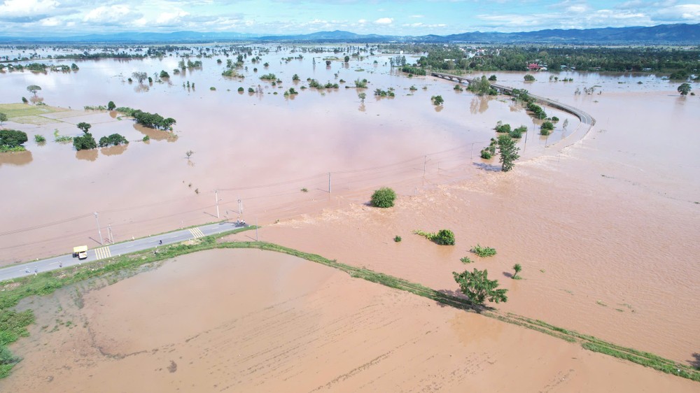 Lũ lớn đổ về gây ngập đầu cầu Quý Đức tại phường Ayun Pa (tỉnh Gia Lai)