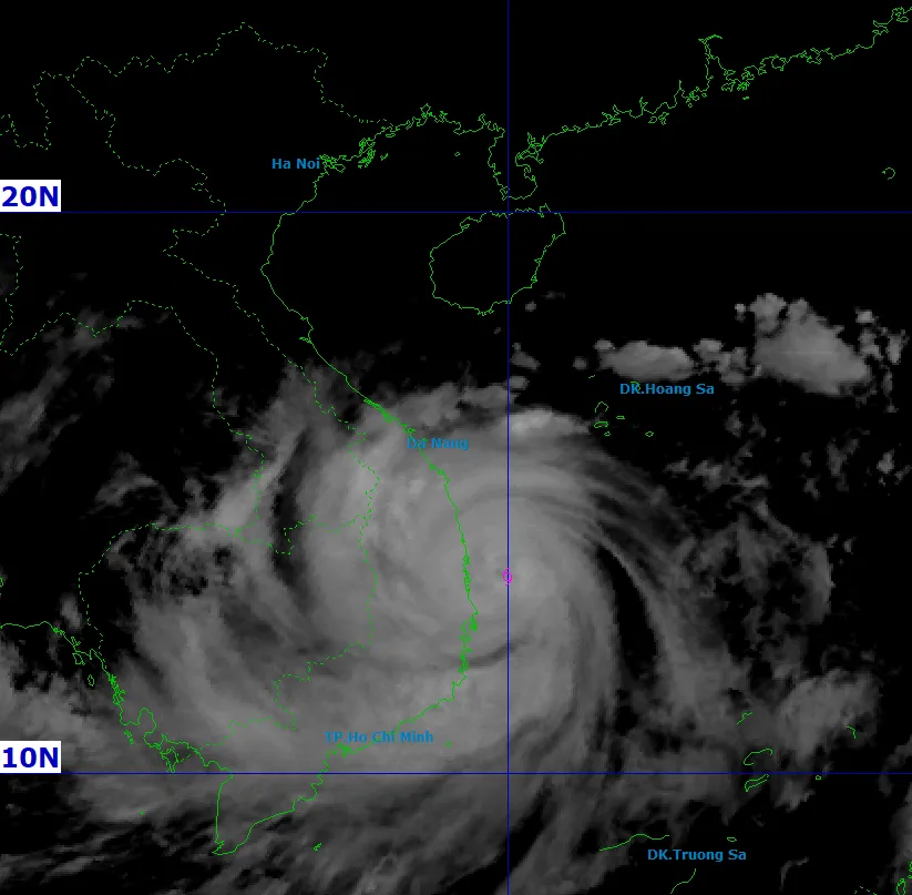 Hình ảnh mây vệ tinh cho thấy bão số 13 đang áp sát đất liền của nước ta.