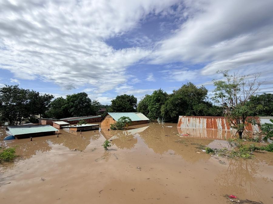 Hàng trăm ngôi nhà ở phường Ayun Pa (Gia Lai) chìm trong biển nước. Ảnh: Văn Ngọc