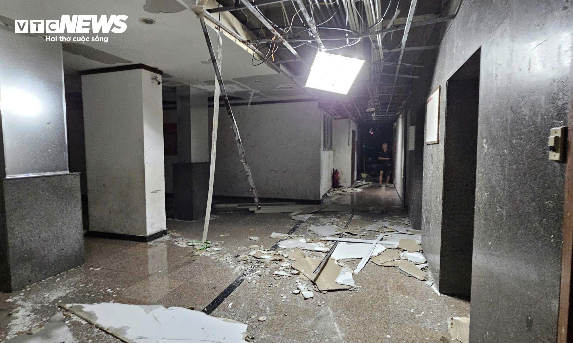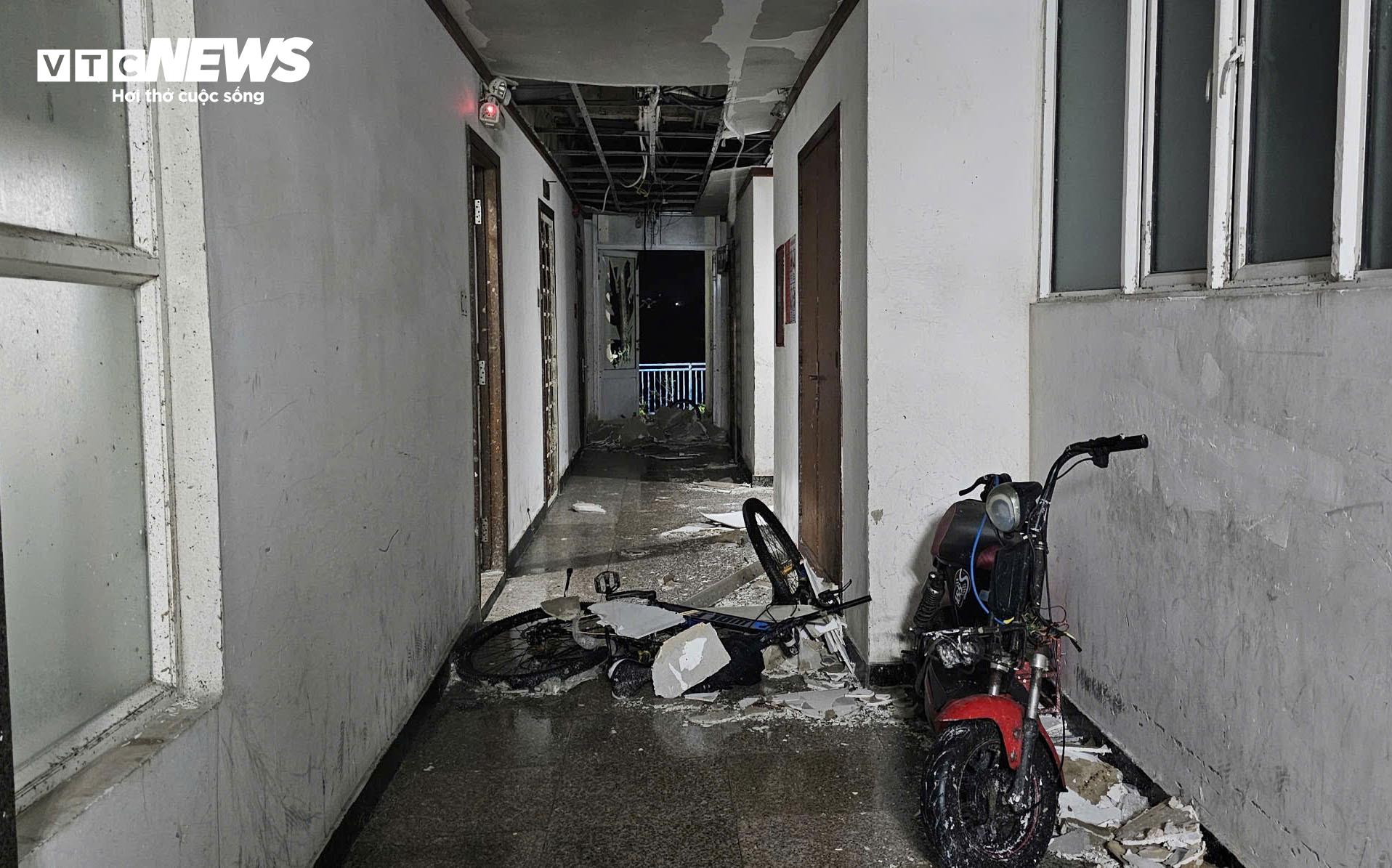Dãy nhà trọ bị thiệt hại nặng, xe cộ hư hỏng.
