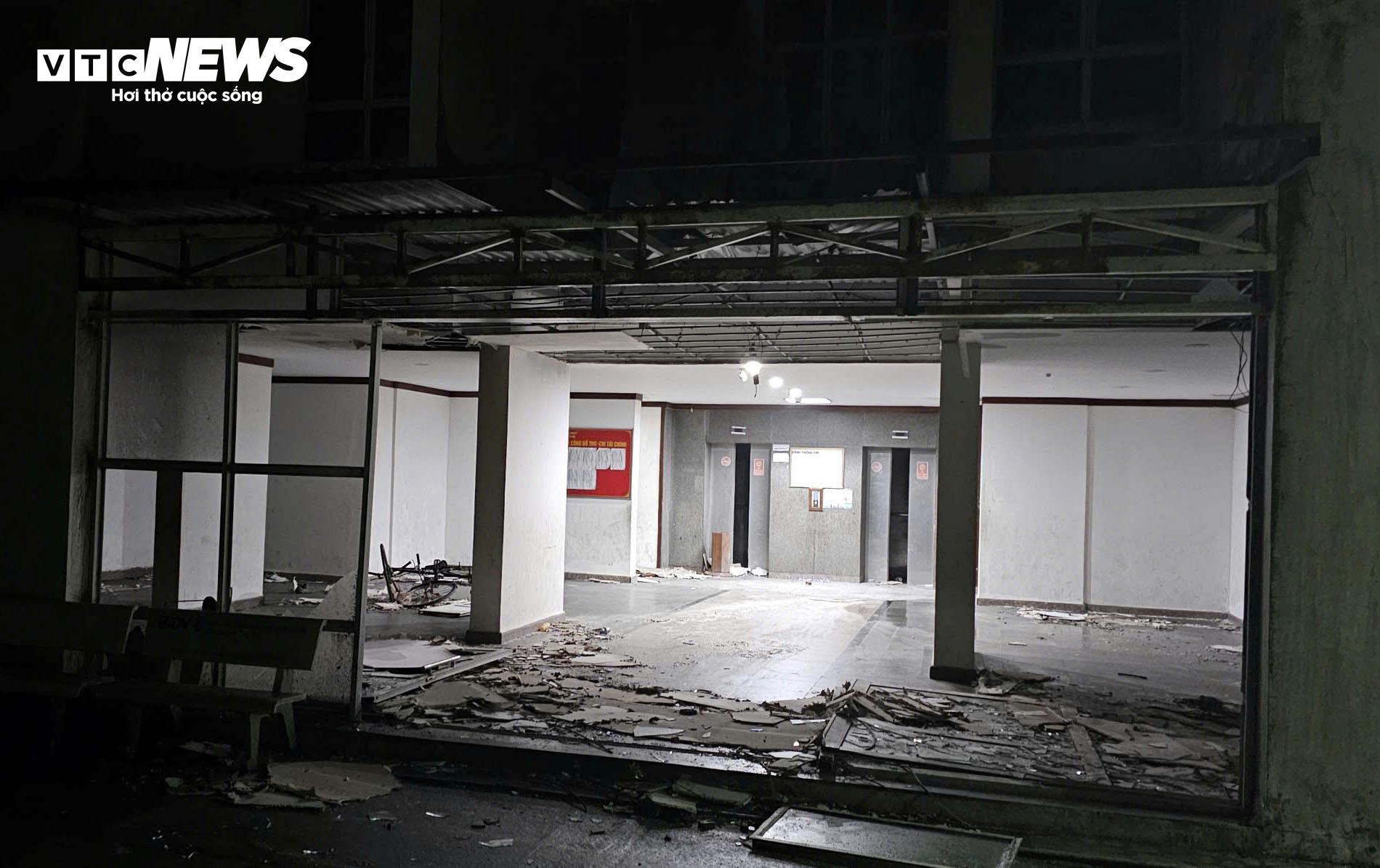Mái tôn bị thổi bay, ghế đá bị gió lật tung trên đường, thậm chí ô tô của người dân đã được che chắn, chằng chéo cẩn thận nhưng vẫn bị bão số 13 lật đổ, làm vỡ kính. Hàng loạt cửa cuốn, trần nhà của các chung cư xã hội bị gió giật bung, đổ sập.