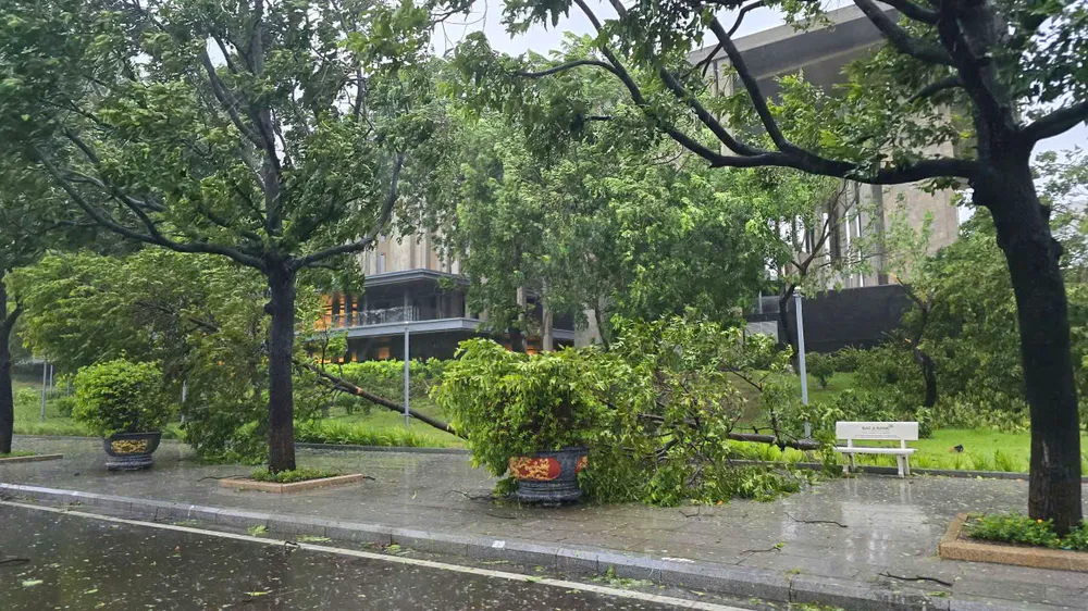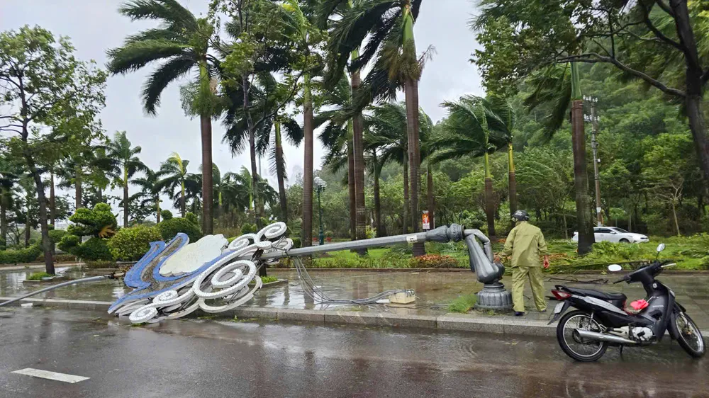 Từ 16 giờ ngày 6-11, bão số 13 bắt đầu chuyển biến, gió giật mạnh gây hư hỏng nhiều bảng hiệu quảng cáo, trụ đèn chiếu sáng và cây xanh đô thị.