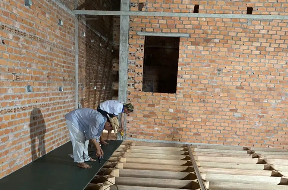 Người dân bảo trì nhà nuôi chim yến. Ảnh: H.T