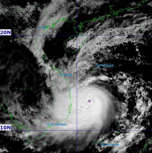 Dự báo chiều tối nay, bão vào đến vùng ven biển Quảng Ngãi-Đắk Lắk với cường độ rất mạnh, cấp 13-14, giật cấp 17. Sau đó bão đi sâu vào đất liền khu vực này. Vùng nguy hiểm trong những giờ tới: Vĩ tuyến 11,50N-16,00N; Phía Tây kinh tuyến 114,50E.