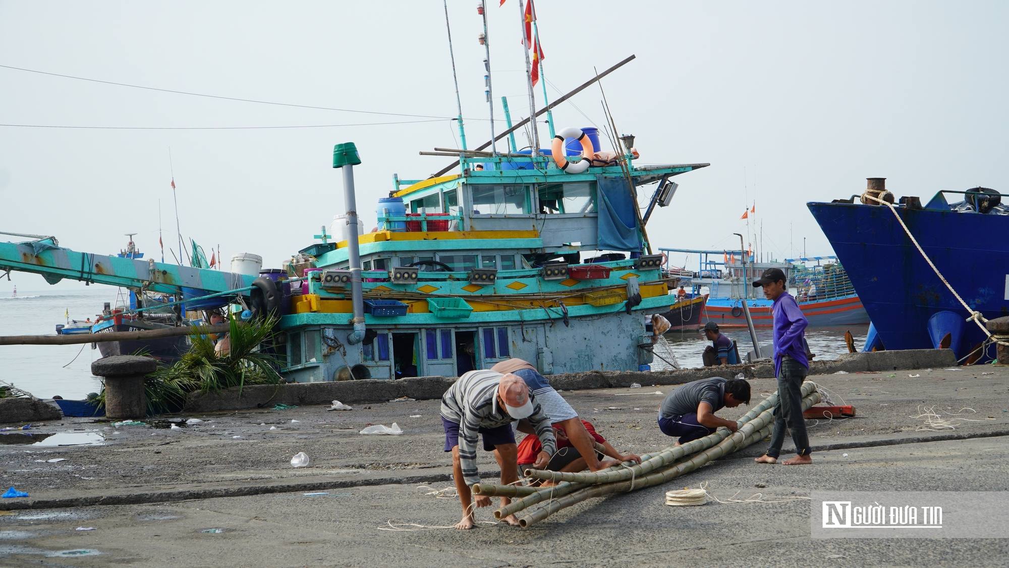 Tại cảng cá Phan Thiết, nhiều tàu cá vừa tiếp nhiên liệu, đá lạnh và thu mua lương thực chuẩn bị cho chuyến biển thì phải dừng mọi hoạt động. Các chủ tàu nhanh chóng gia cố dây neo, kiểm tra máy móc và thu gom ngư cụ trước khi thời tiết xấu xuất hiện.
