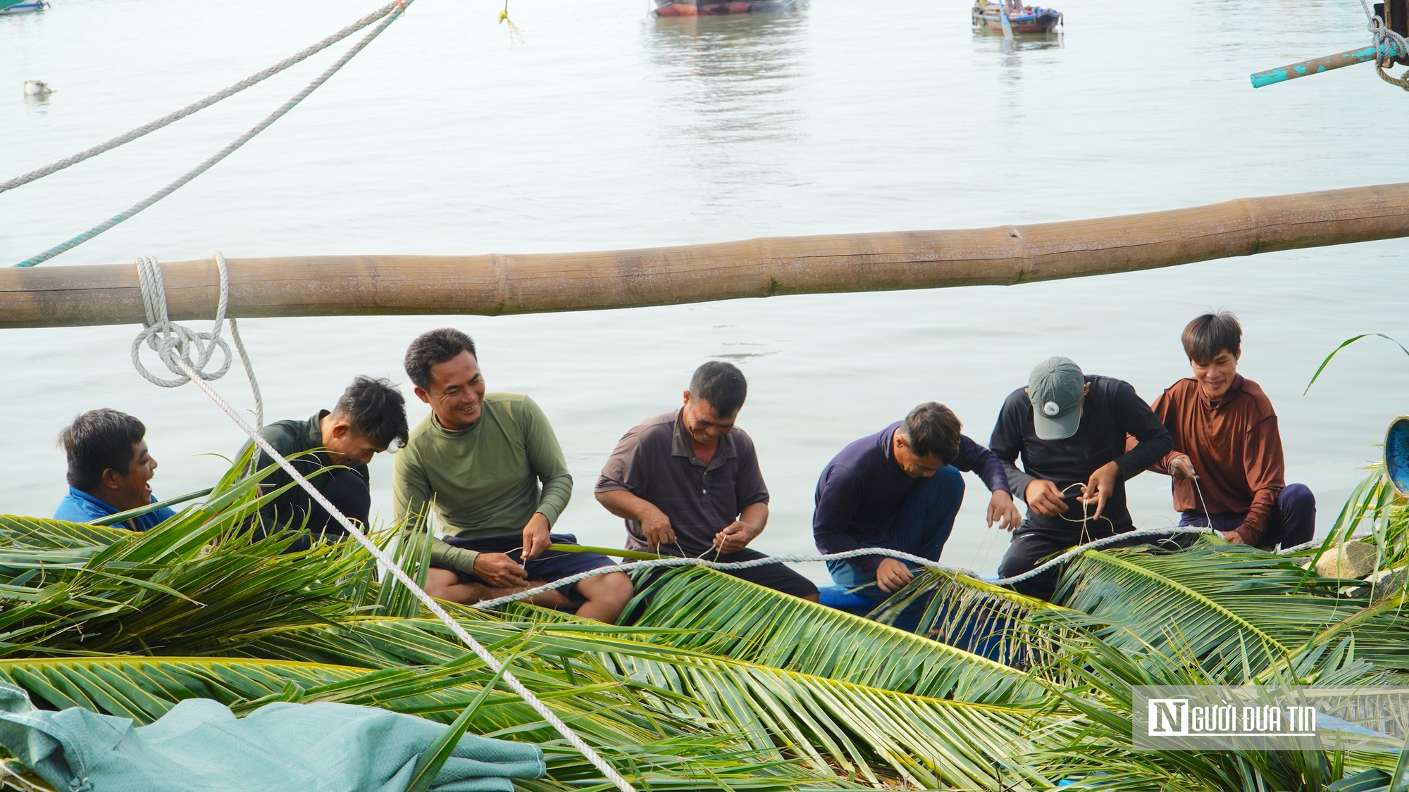 Các ngư dân tu bổ cội chà để chuẩn bị ra khơi sau khi hết cấm biển.