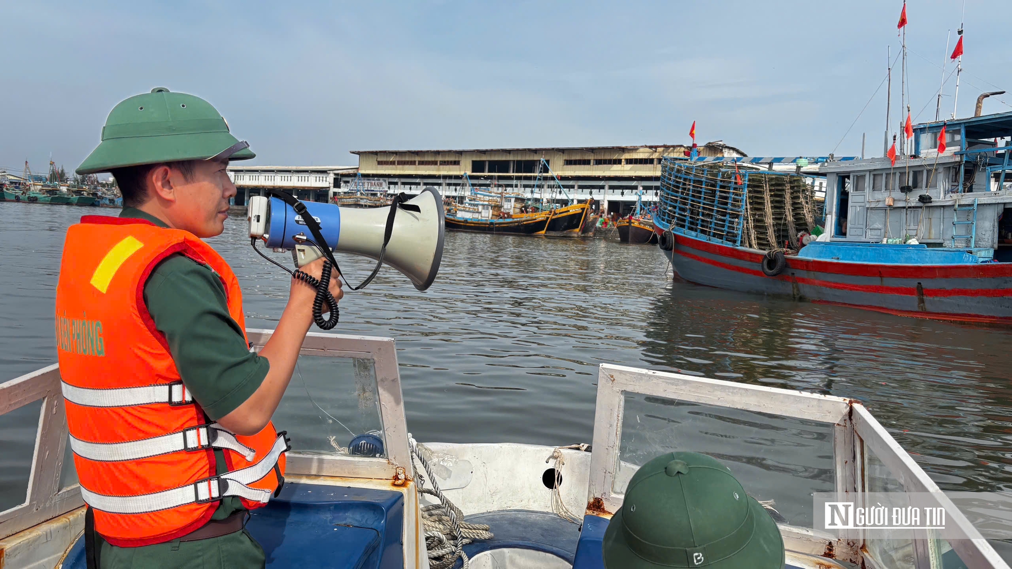 Lực lượng biên phòng thông báo cho các tàu cá về lệnh cấm biển.