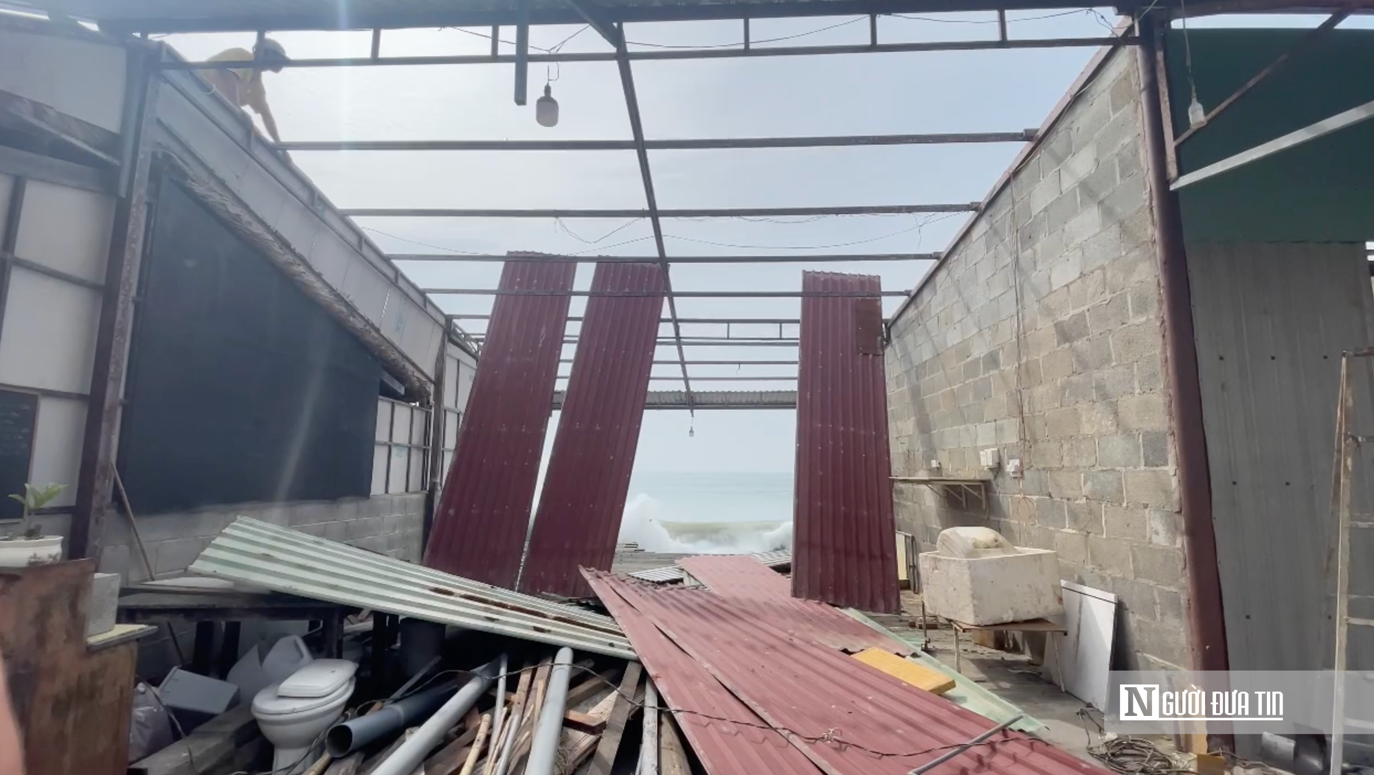 Sóng đánh vào nhà các hộ kinh doanh ở khu phố Hàm Tiến 1, phường Mũi Né gây thiệt hại.