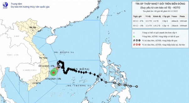 Trung tâm Dự báo khí tượng thủy văn Quốc gia dự báo, ngày và đêm 3/12, khu vực từ Nam Quảng Trị đến TP. Đà Nẵng, phía Đông các tỉnh từ Quảng Ngãi đến Đắk Lắk và Khánh Hòa có mưa vừa, mưa to với lượng mưa phổ biến từ 40-100mm, cục bộ có nơi mưa rất to trên 150mm.