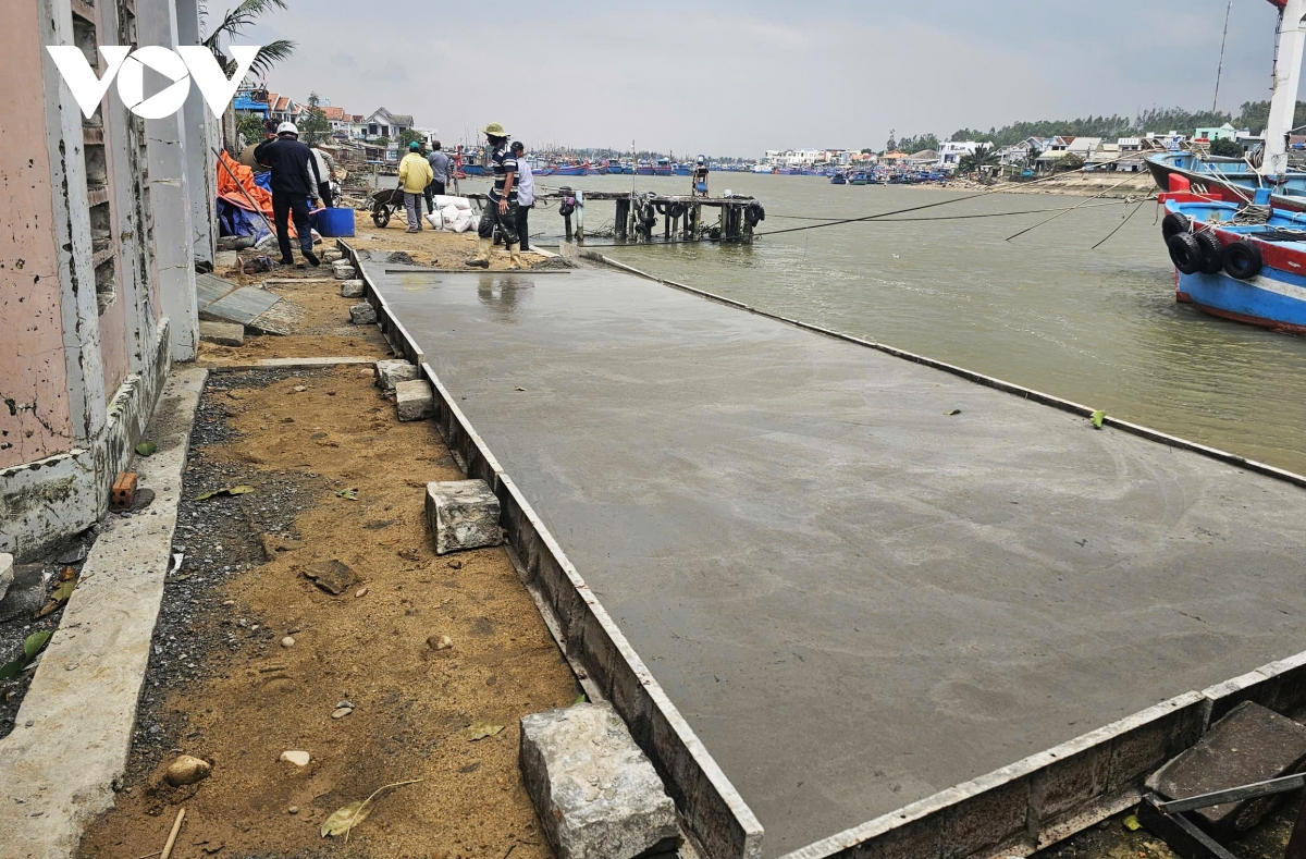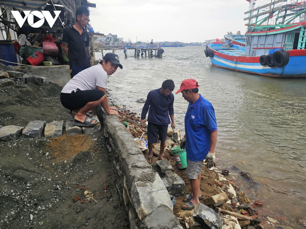 Để ứng phó với cơn bão số 15, ông Tuấn cùng nhiều người dân xóm Kỳ Bắc, thôn An Kỳ tự gia cố kè bằng bê tông chống triều cường dâng:
