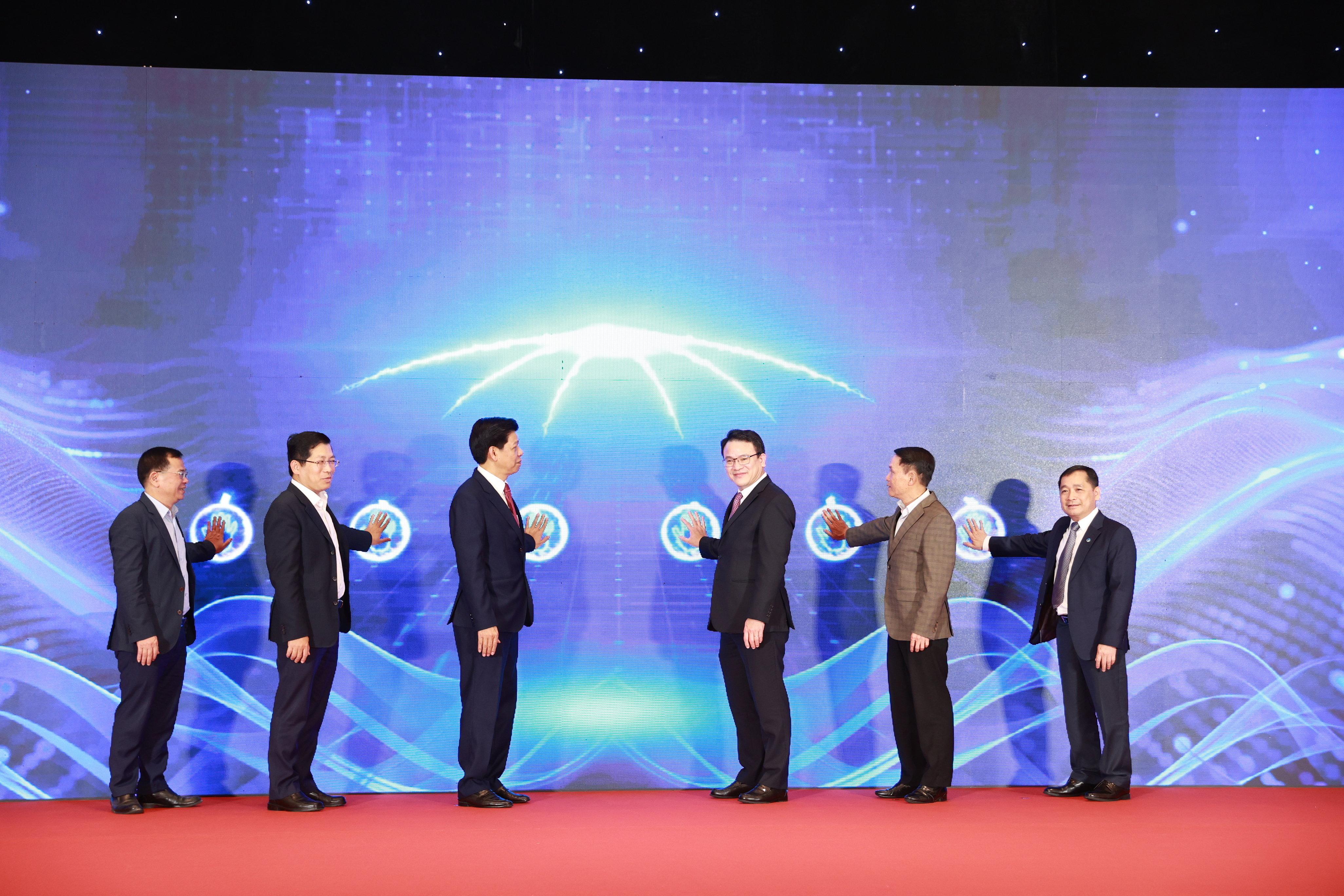 Các đại biểu ấn nút ra mắt giao diện điện tử mới của báo Tài chính - Đầu tư. Ảnh: BTC